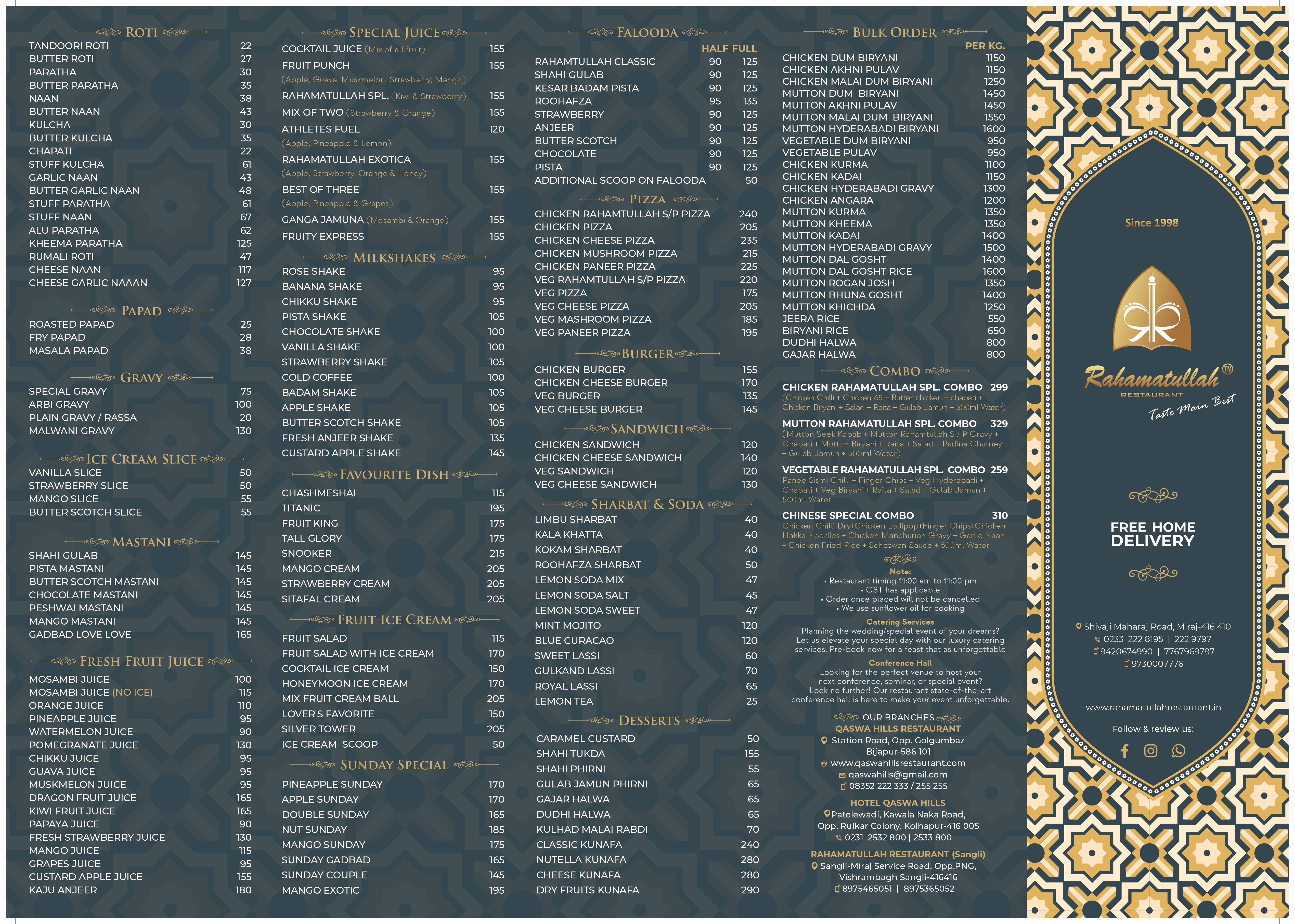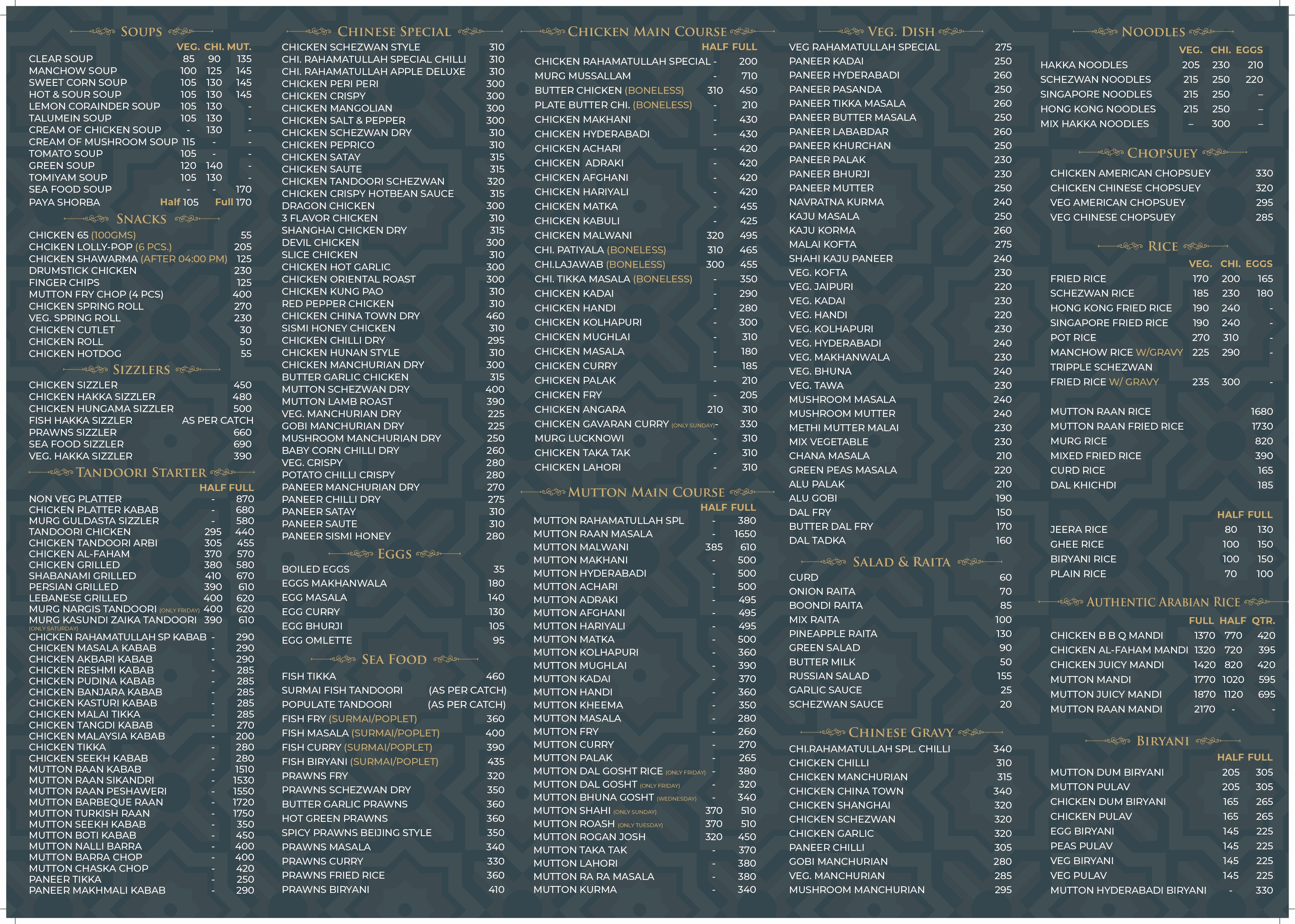 Our Detailed Menu